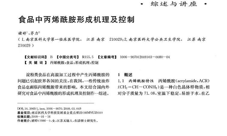 一、食品中國丙烯酰胺形成機理目前為止,由天冬酰胺和還原性糖在高溫加熱過程中通過美拉德反應(Maillardreaction)生成丙烯酰胺的途徑是較為公認的形成途徑,國內外對此研究也較多。二、食品中丙烯酰胺形成的影響因素高溫中丙烯酰胺生成受多種因素的影響,如加工溫度和時間、還原糖盒游離氨基酸種類及含量、游離氨基酸與還原糖的摩爾比、褐變程度、PH值、食品含水量等。三、控制食品中丙烯酰胺的方法1-減少食…